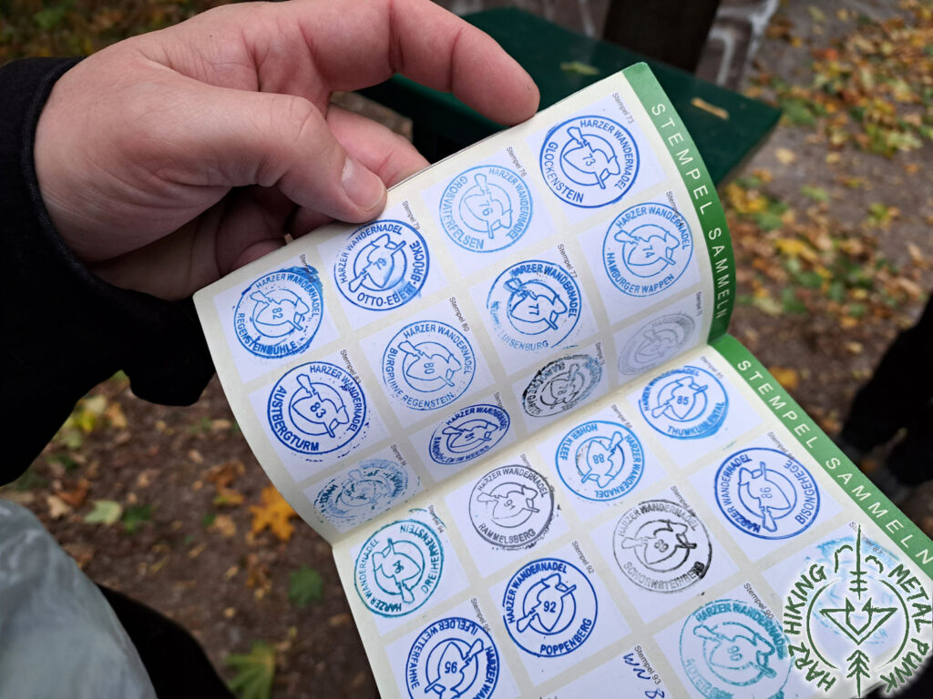 In der Zwischenzeit durfte ich einen langjährigen Freund Anfang Oktober auf einer kurzen Tour in Blankenburg zur Otto-Ebert-Brücke begleiten. Hier setzte er nach vielen Jahren den letzten von 222 Stempeln in sein Heft der Harzer Wandernadel. Bei sehr herbstlichem Wetter inklusive Regen, Sturm und prächtiger Laubfärbung ging es von der Teufelsmauer hinauf zur Stempelstelle 79, um auf dem Rückweg im kleinen Schloss zu Blankenburg die Lorbeeren in Form von Urkunde und Abzeichen einzufahren.