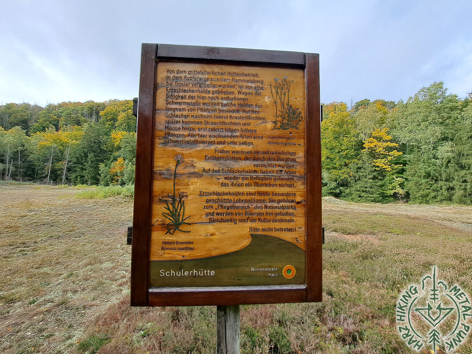 Neue Inspiration gab es für mich auf der Ahlsburg, einer ehemaligen Höhenburg aus dem 12. Jahrhundert, die im Laubwald des Eckertals auf einem Felskamm über der Ecker liegt. Etwas weiter unterhalb gelegen, die ehemalige Schulerhütte. Schon im Mittelalter wurden an dieser Stelle Kupfererze aus dem Bergwerk Rammelsberg in Goslar verarbeitet. Dabei wurden hohe Konzentrationen an Schwermetallen freigesetzt. Auf den, für den Naturschutz sehr wertvollen, Flächen können neben Moosen, Flechten und Heide nur sehr seltene, schwermetallresistente höhere Pflanzenarten wie das Kupferblümchen oder die Hallersche Grasnelke wachsen. Die Schulerhütte gehört als Kulturdenkmal zur Nutzungszone des Nationalparks. Der sogenannte Schwermetall-Magerrasen wird durch landschaftspflegerische Maßnahmen erhalten.