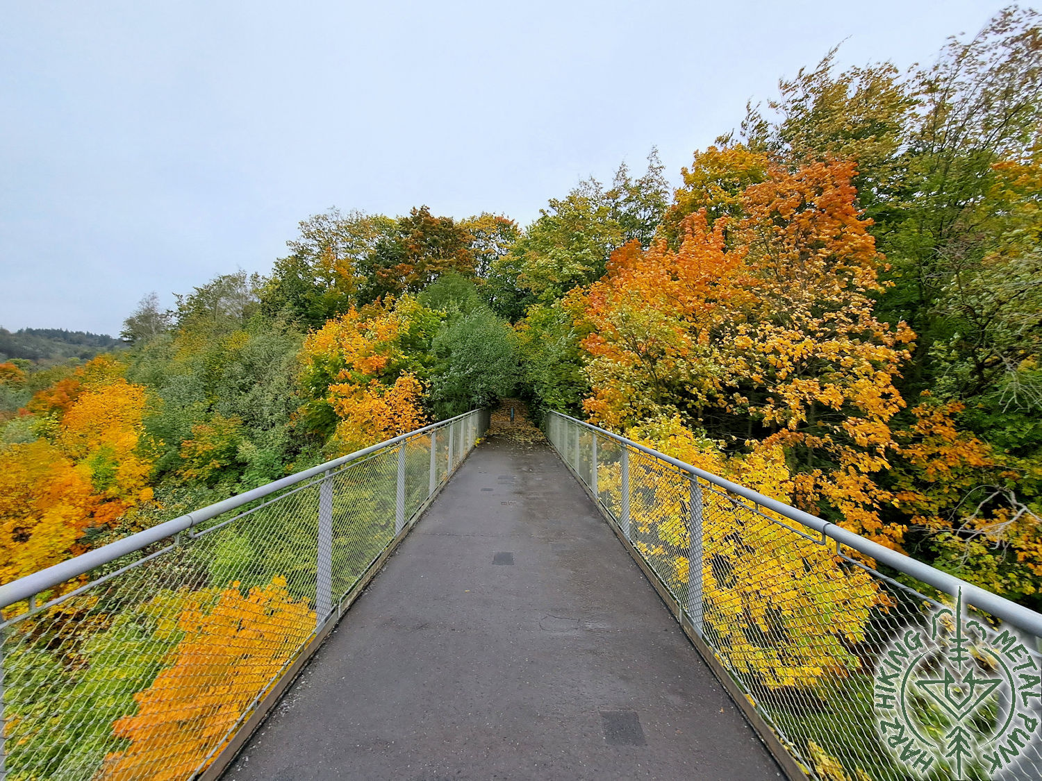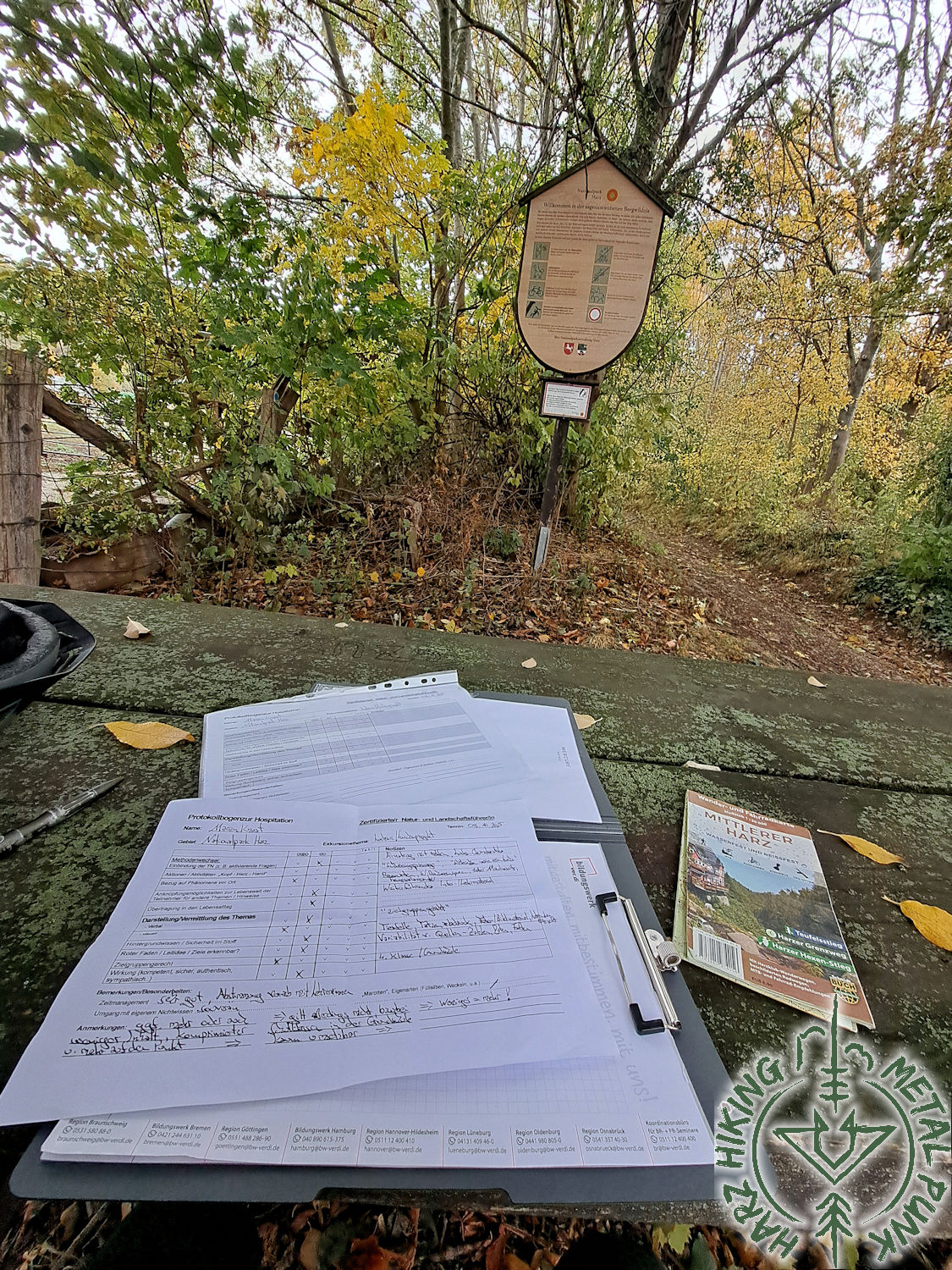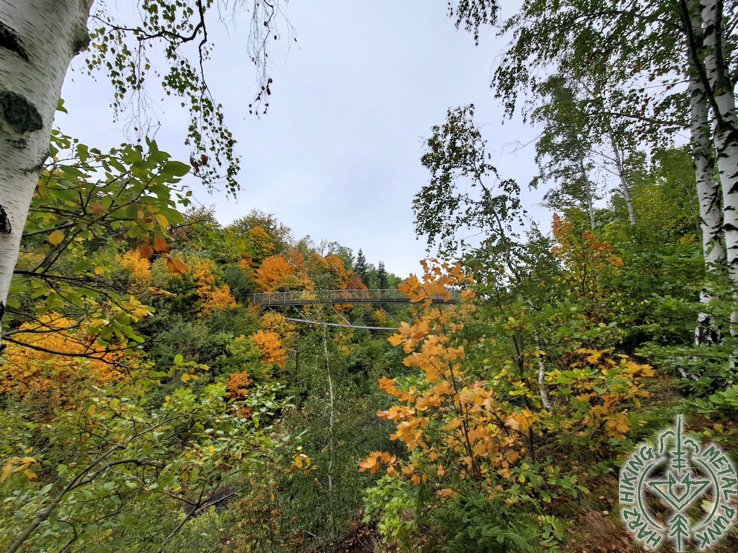 In der Zwischenzeit durfte ich einen langjährigen Freund Anfang Oktober auf einer kurzen Tour in Blankenburg zur Otto-Ebert-Brücke begleiten. Hier setzte er nach vielen Jahren den letzten von 222 Stempeln in sein Heft der Harzer Wandernadel. Bei sehr herbstlichem Wetter inklusive Regen, Sturm und prächtiger Laubfärbung ging es von der Teufelsmauer hinauf zur Stempelstelle 79, um auf dem Rückweg im kleinen Schloss zu Blankenburg die Lorbeeren in Form von Urkunde und Abzeichen einzufahren.