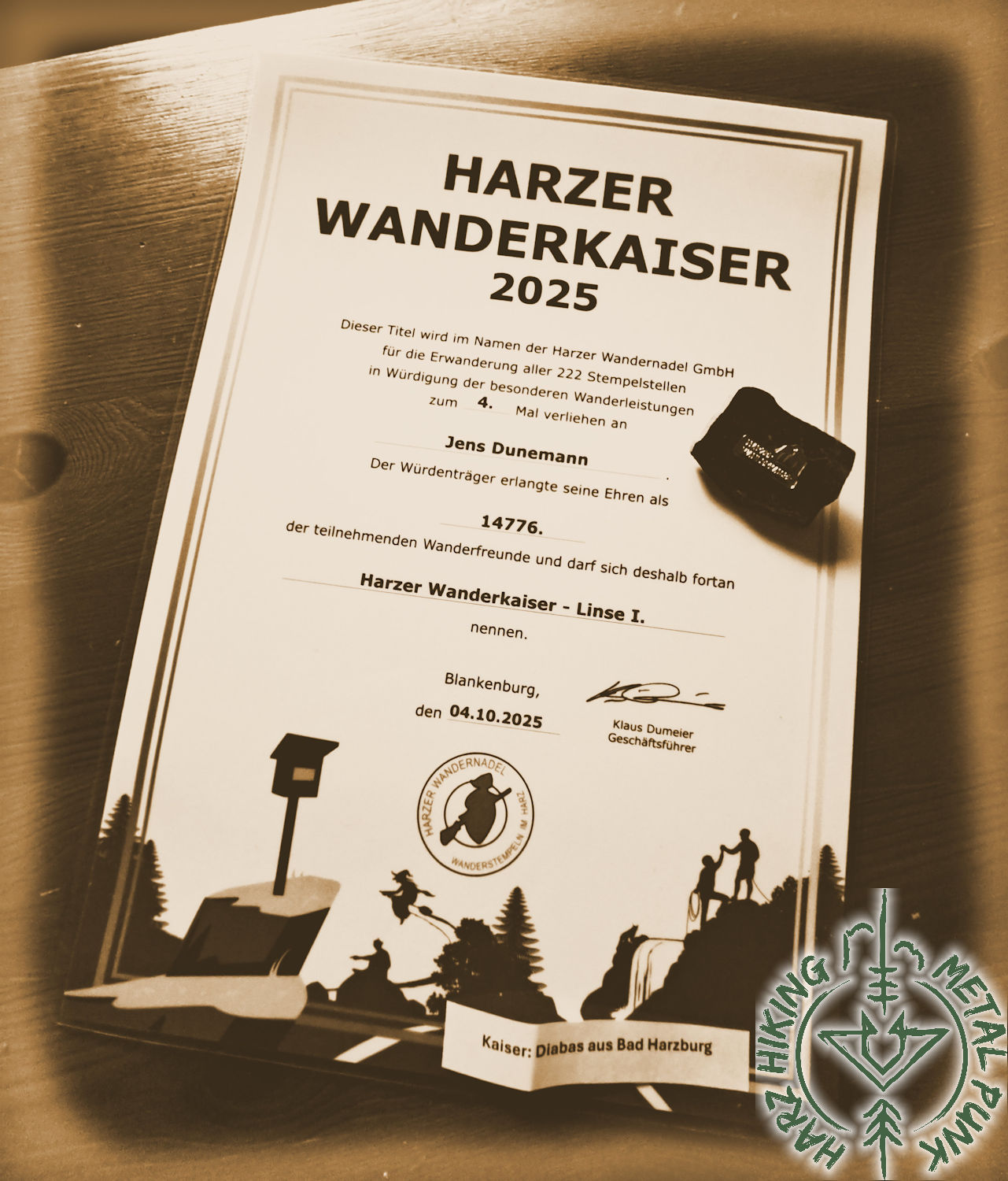Am Rande durfte ich selbst meine vierte Kaiser-Auszeichnung in Empfang nehmen. Obwohl die Anzahl an Sonder- und Themenstempeln in den vergangenen Jahren inflationär gewachsen ist, so ist das Projekt der Harzer Wandernadel, das im kommenden Jahr 20 Jahre besteht, mehr denn je ein länderübergreifender Erfolg. Und auch ich stempele immer noch gerne und regelmäßig, wenn ich draußen im Harz unterwegs bin.