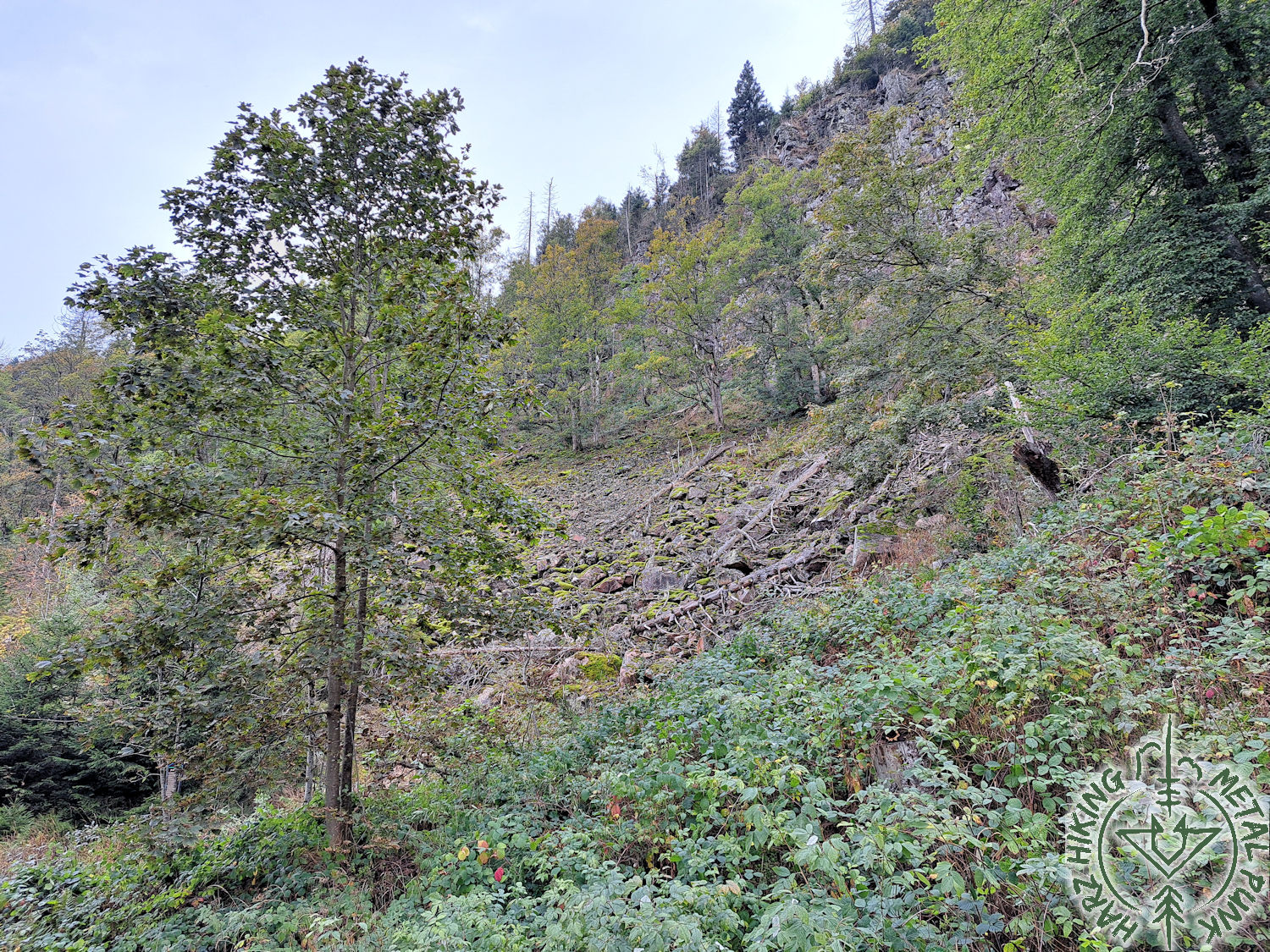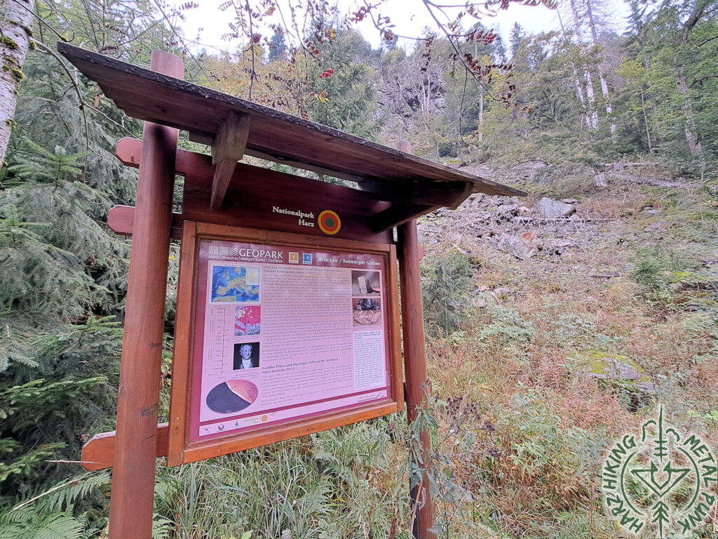 Bei milden Temperaturen ging es am Rehberger Graben, über den einst die Wasserversorgung der Erzgruben im Andreasberger Revier sichergestellt wurde, entlang – auf den Spuren von Goethe, der im September 1783 mit seinem Freund Friedrich Wilhelm Heinrich von Trebra den selben Weg zur Blockhalde an den Hohen Klippen nahm. Jenes Blockhalden-Geotop, welches heute gemeinhin als „Goethe-Wand“ bekannt ist. Die Blicke durften hinab ins Odertal aber auch auf die gegenüberliegende Talseite zur Hahnenklee-Klippe mit ihren Blockhalden schweifen, während der Geruch von vergehendem Herbstlaub in der Luft lag. Nachdem die Geschichte um die geognostischen Irrtümer des Dichterfürsten und seine Versuche, die naturwissenschaftlichen Gesetzmäßigkeiten von Mineralien und Gesteinen zu durchdringen, erzählt war, ging es zur Rast ins Rehberger Grabenhaus.