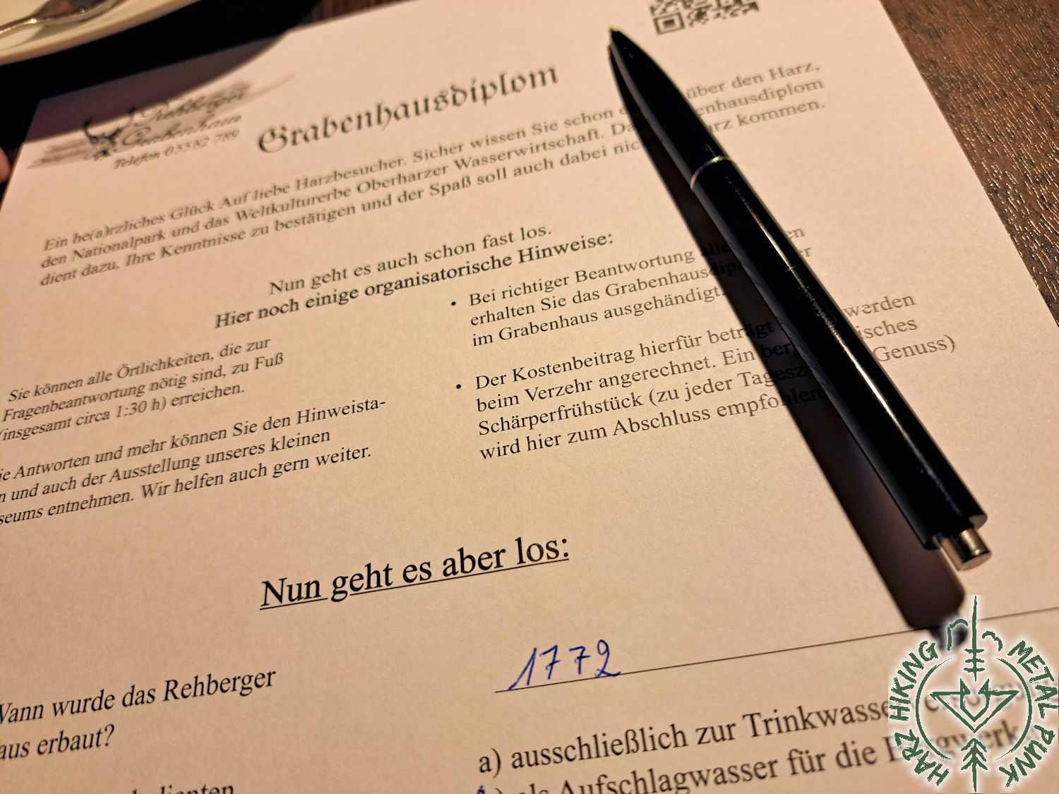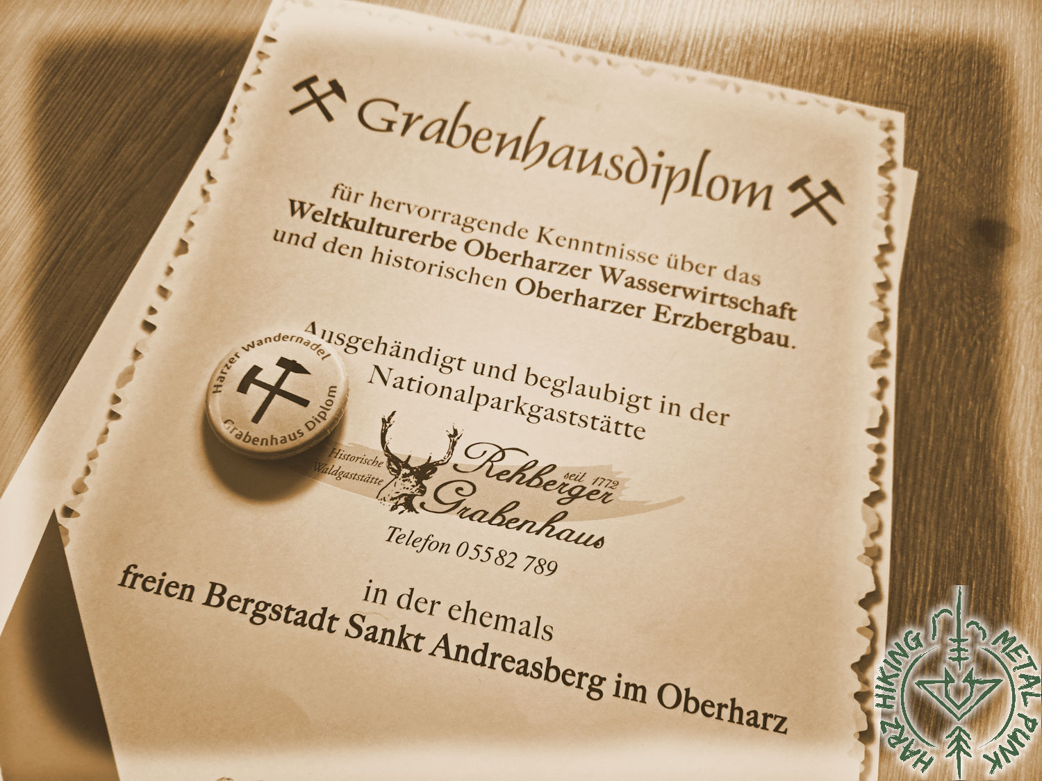 Am einstigen Dienstsitz des Graben-Steigers gab es zur Stärkung nicht nur Pilz-Ragout sowie vorzüglichen Schmand-Mohnkuchen und Eierschecke, sondern zwei Wanderer*innen legten mit ihrem frisch erworbenen Wissen über den Andreasberger Bergau das Grabenhaus-Diplom ab und dürfen sich seither mit dem Titel „Ehren-Grabensteiger“ schmücken.